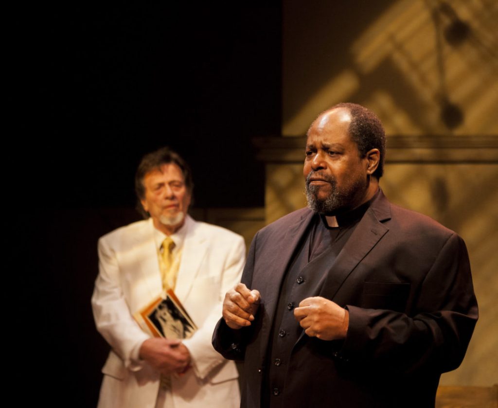 Huxley and Wilberforce immediately resume their old debate—with comic and self-revealing taunts, making the best moments of the play. The unlikely setting of Malibu meshes nicely with the fact that they have all been dead for over a 100 years.  Surprisingly Darwin’s Origin of Species, his groundbreaking and often validated theory, is still being vigorously debated! A defiant Wilberforce claims that his “new” church in Alabama stands firmly on the side of Faith as he denounces the claims of science.