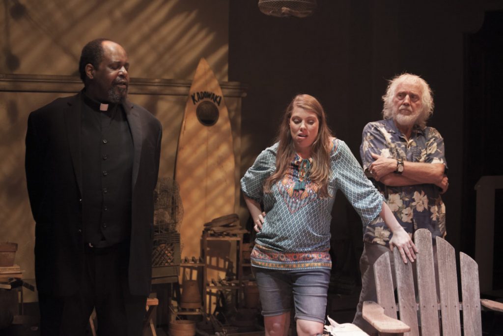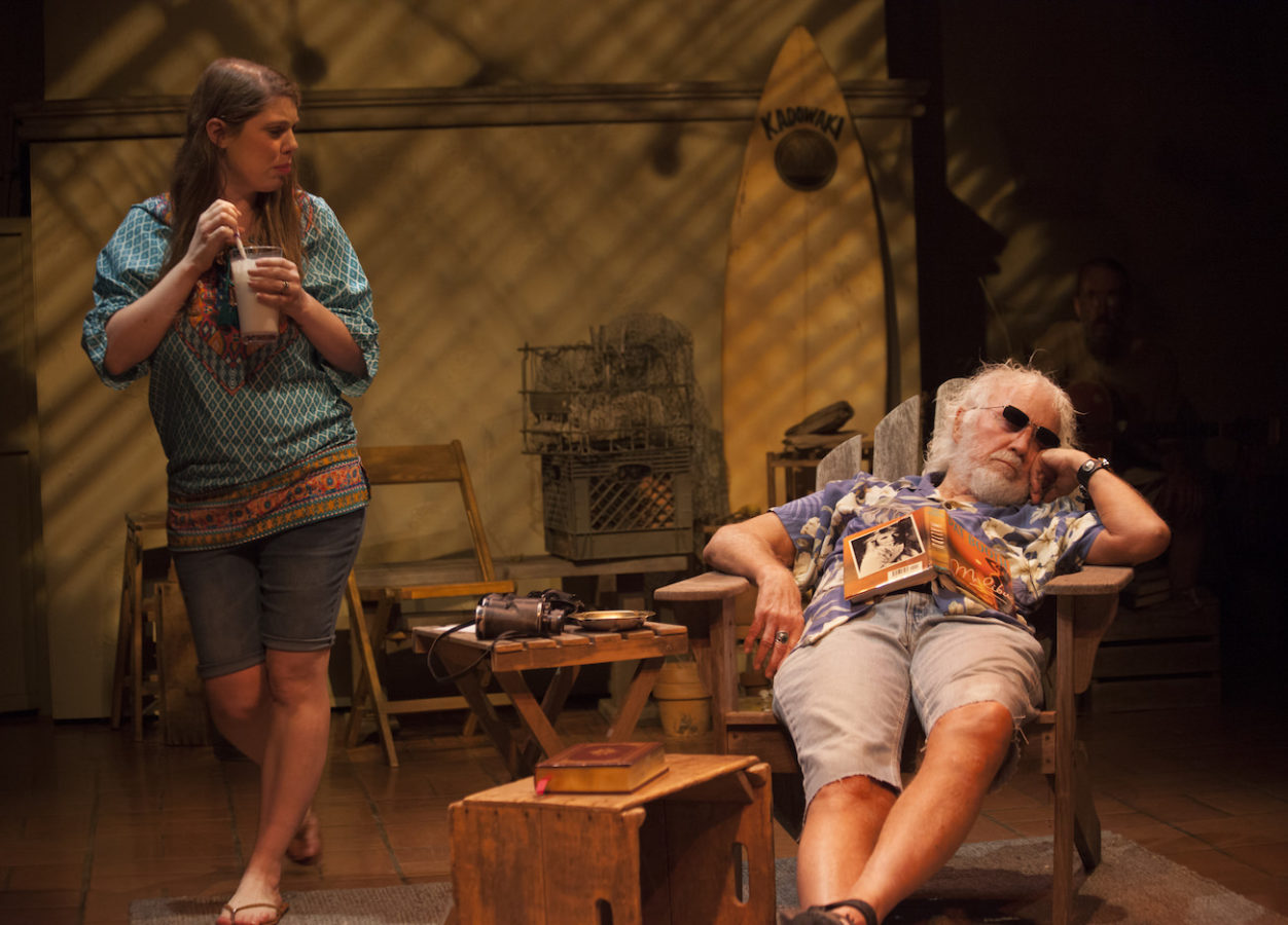 As the play opens, we find Charles Darwin (the talented George Killingsworth) asleep in a chair on the porch of his beach house in Malibu. His wild white hair and uncombed beard, cutoff jeans, and Hawaiian shirt mark him as a typical beach bum. He is awakened by Sarah (the vivacious, sardonic Leandra Ramn), a young, California beach girl, who serves him smoothies and laments her lost boyfriend.