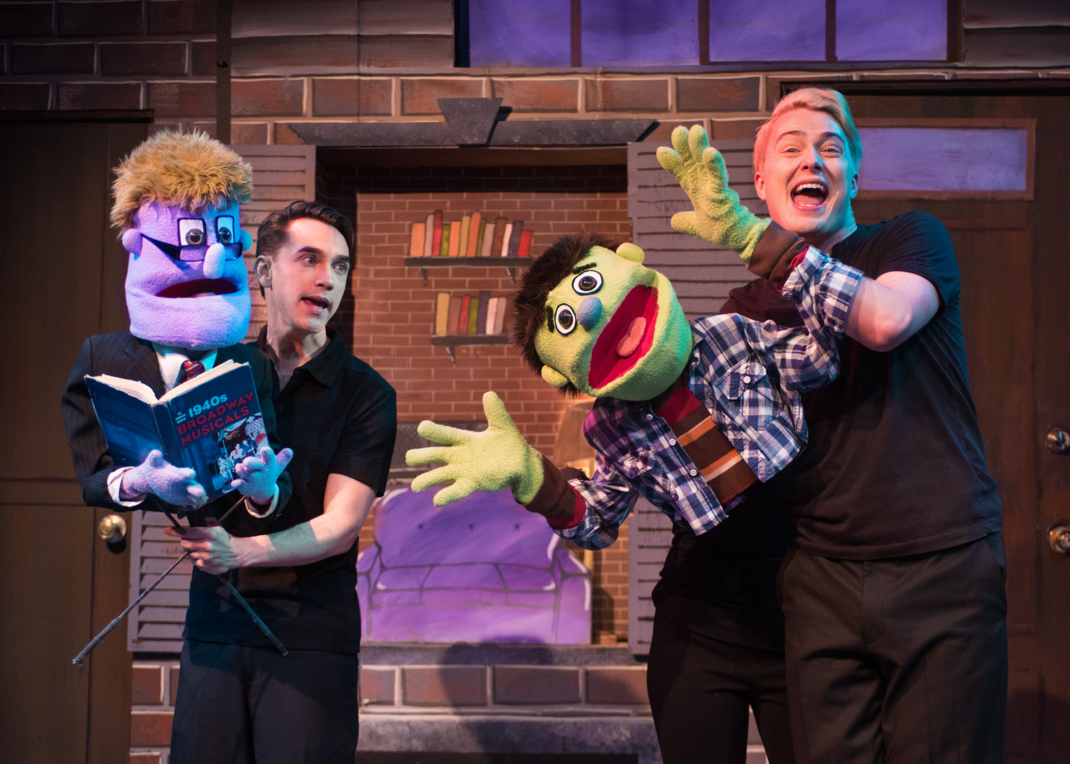 Rod and his sweet roommate, Nicky (a sprightly and tuneful Brendan North) owe a lot to Ernie and Bert on Sesame Street. Their puppet personas are the brightly colored furry puppets they wear on their arms—still a witty innovation. Stoner makes his gender-questioning Rod a touching character; while North fruitlessly tries to help him out. They work together, beautifully—a couple uncoupled.