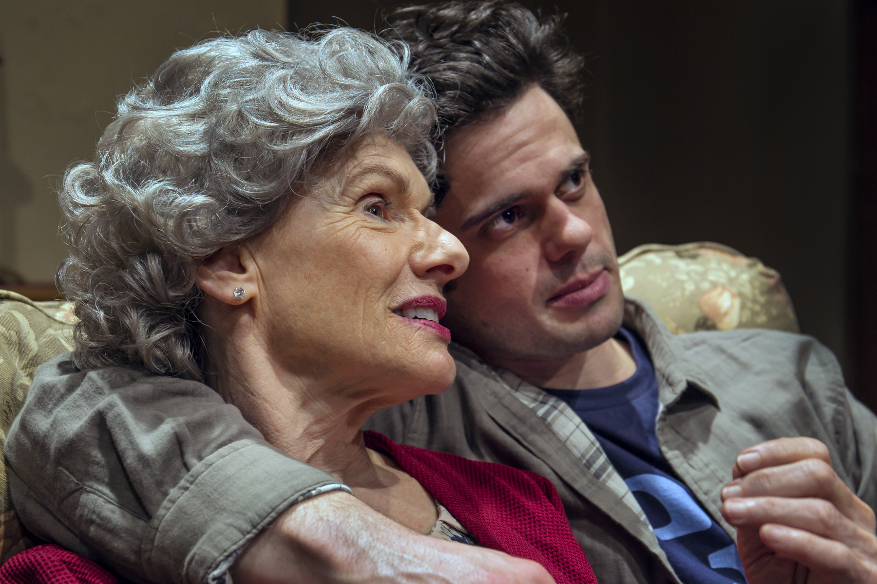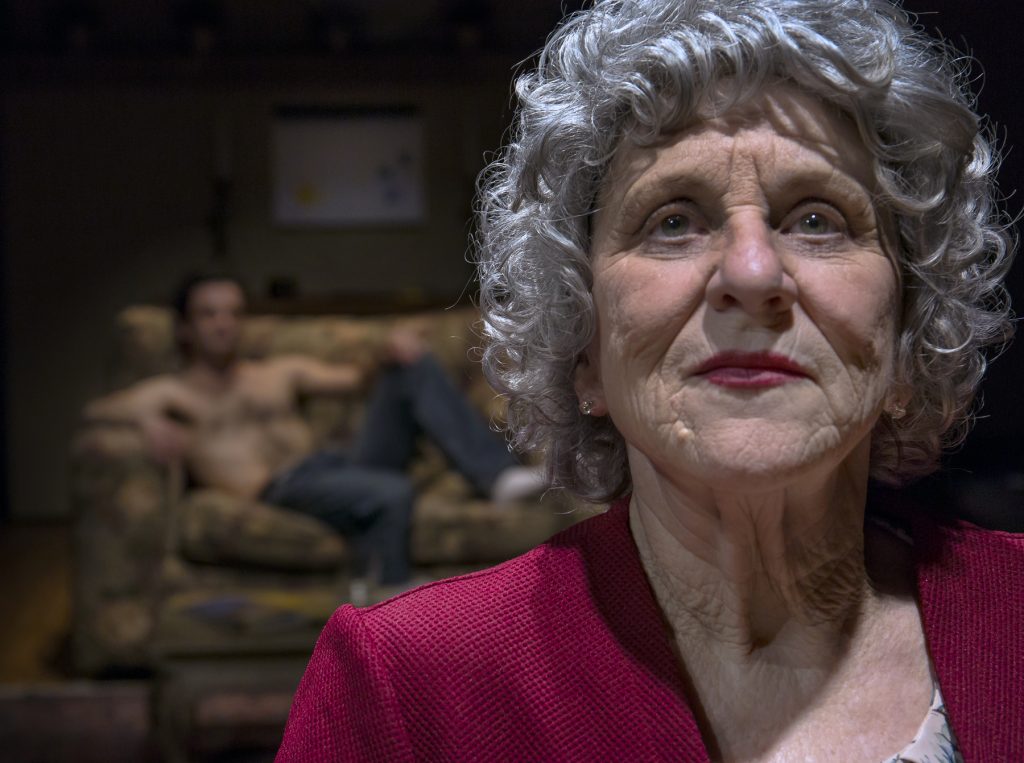 If you are intrigued by a story that features elderly twins, Jessie and Inez (Tamar Cohn and Anne Hallinan) and their love affair, seduction and torture of a handsome young book-dealer called Marcus (Adam Roy), then this is the play for you. We get to enjoy Inez’s tying down the stripped young buck in his skivvies to a sofa, as he squirms and shouts. If you can feature a lavish dose of voyeurism, exhibition, and sadism, this is definitely your play. The broad-shouldered, sexy Marcus falls victim to Inez’s jealousy of Jessie’s young boyfriend. He is trapped between the two sisters, one seeking love and the other vengeance.