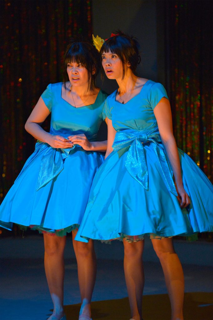 Tiffany Villarin (M) and Rinabeth Apostol (L) in “peerless.” Photo: Kevin Berne