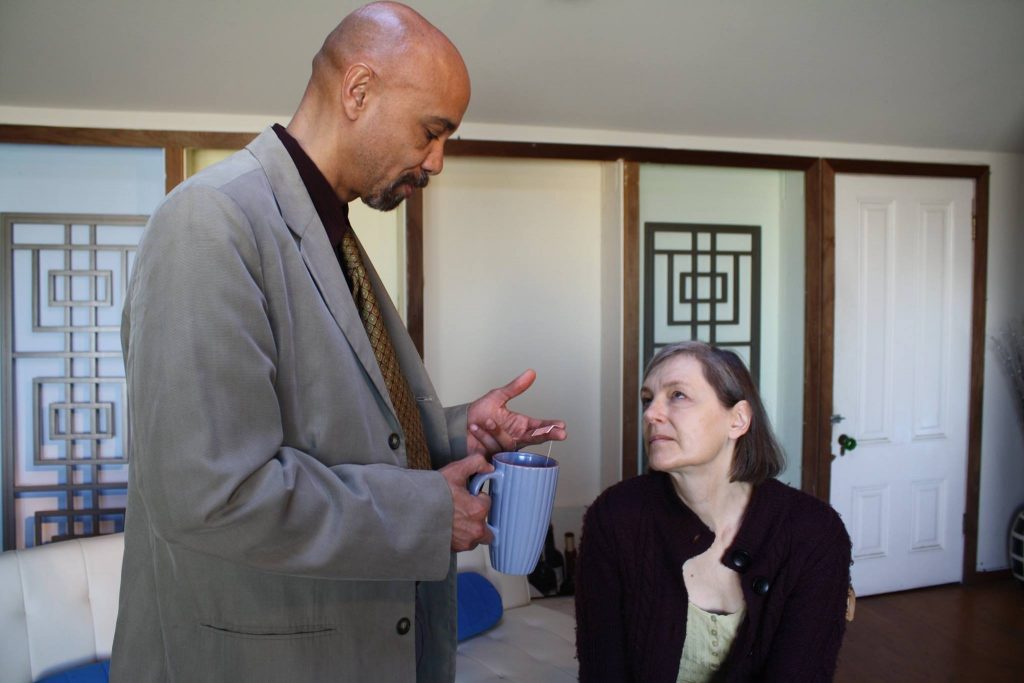When Joanna plays “the race card,” Sam reveals that the murder of his daughter, a black policewoman shot point-blank by white assailants, made him leave his law practice to become a family advocate. No matter where one stands on the issue, Joanna’s suffering, as movingly played by Sylvia Kratins, stirs us, deeply. But her reaction to Sam’s story, gives us another turn of the screw.
