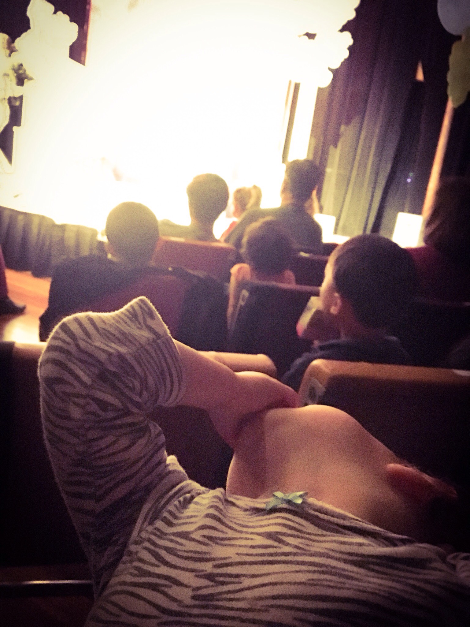 The sets and props are a delight, the acting is strong, and the singing shines through. I highly recommend this production, which is designed for children ages four and up, but which even younger kids with the right temperament will enjoy. My 17-month-old, Itasca, was clapping and bopping to the music, watching almost all the action, albeit upside-down at certain points.