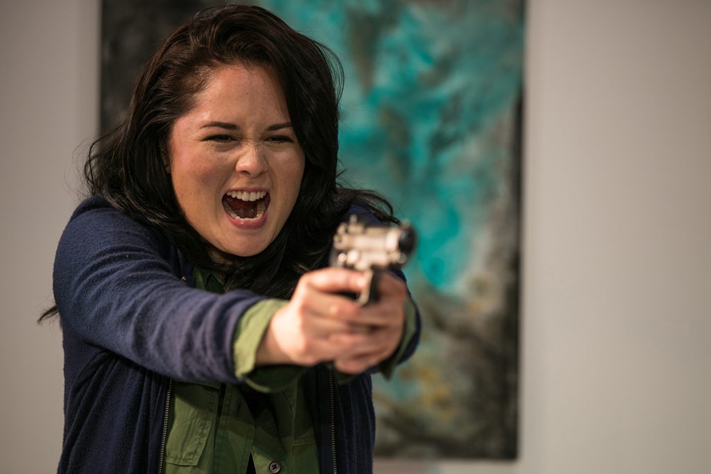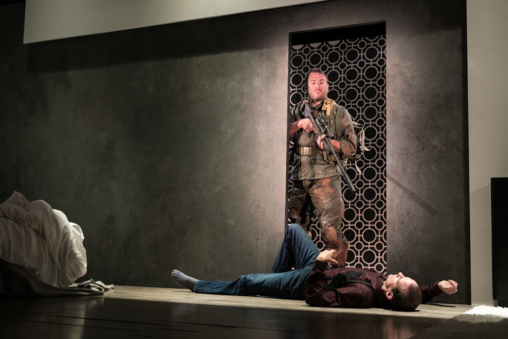 When Cate (explosive Adrienne Kaori Walters) turns up in the bare hotel room with Ian (dynamic, mercurial Robert Parsons), they clearly have a sexual history together. Their awkward meeting verges on violence. Are Cate’s outbursts deep sobs or laughter? It’s up to us to figure that out. Despite this initial confusion, Walters’ piercing scream gives me a heart-rending chill, and causes others to jump in their seats. She seems like a waif, lost in this male, war-weary world.