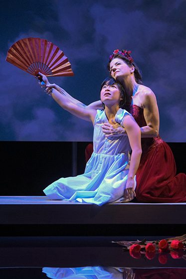 I grant you it doesn’t sound that humorous, but from its fairy tale start to its grisly end, it is, of all unexpected things, fun. Sango Tajima, as Hunger, terrifies us, as she creeps about in horrifying devilish form (Costume Design by Mara Blumenfeld). As Erysichthon, Steven Epp, at first arrogant then ravenous, raves and splashes wonderfully in his outrage.